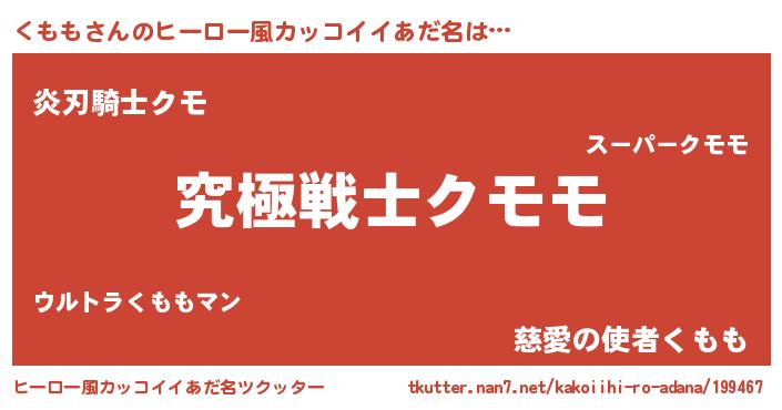 | 意味不明あだ名 | 『自称くもも』『とにかく怪しいくもも』 |