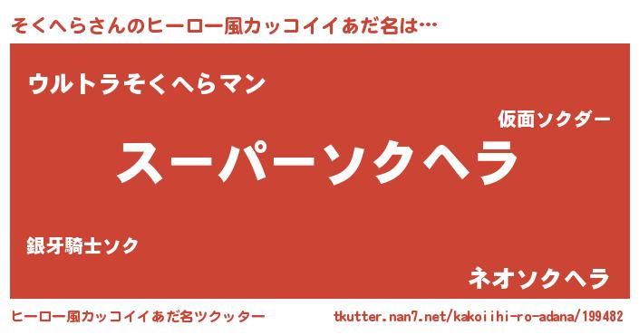 | 男性向けラノベタイトル風あだ名 | 『緋弾のソクヘラ』『そくへらの憂鬱』 |