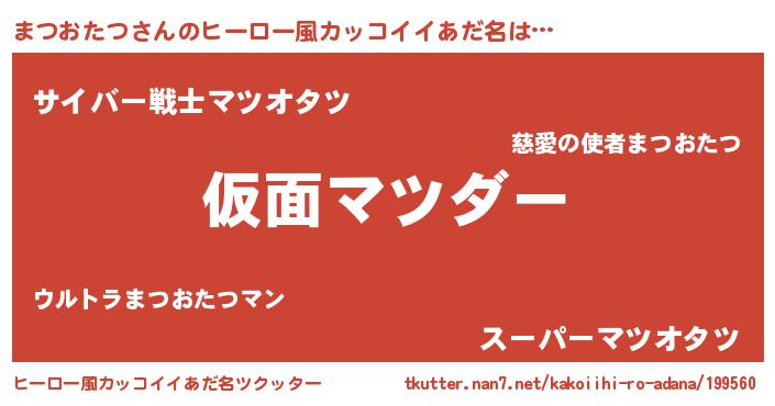 | 男性向けラノベタイトル風あだ名 | 『魔弾の王とまつおたつ』 |
