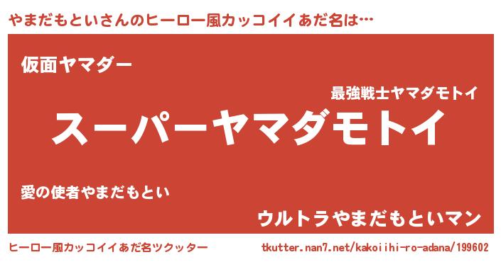 | 胡散臭い通販商品みたいなあだ名 | 『億万長者になれるブレスレット…その名も「やまだもとい」』 |