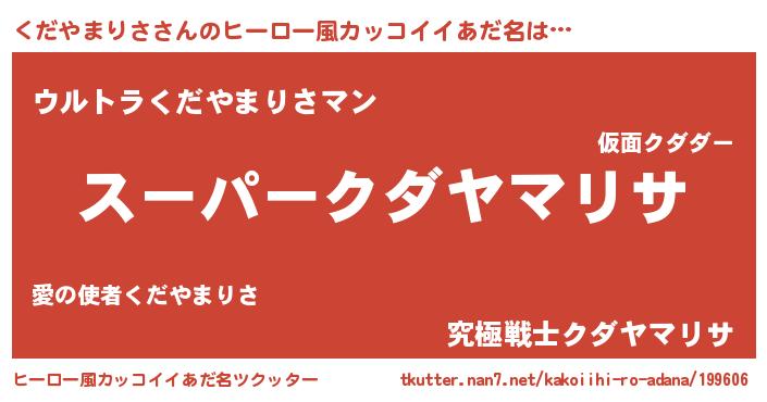 | 男性向けラノベタイトル風あだ名 | 『クダヤマリサアートオンライン』 |