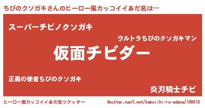 | 男性向けラノベタイトル風あだ名 | 『この素晴らしい世界にちびのクソガキを!』 |