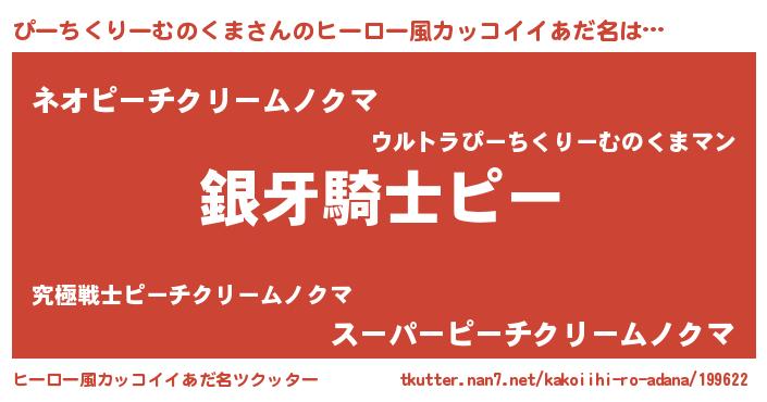 | 欧米人風あだ名 | 『ウサインぴーちくりーむのくま』 |