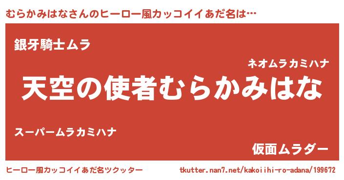 | ヘコむあだ名 | 『むらっぺ』『むらかみはな(小並感)』 |