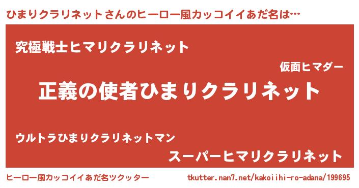 | 男性向けラノベタイトル風あだ名 | 『緋弾のヒマリクラリネット』 |