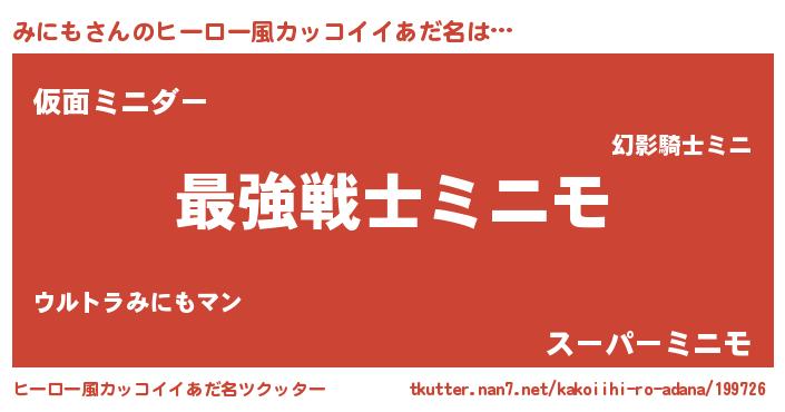 | 男性向けラノベタイトル風あだ名 | 『Re:みにもから始める異世界生活』 |