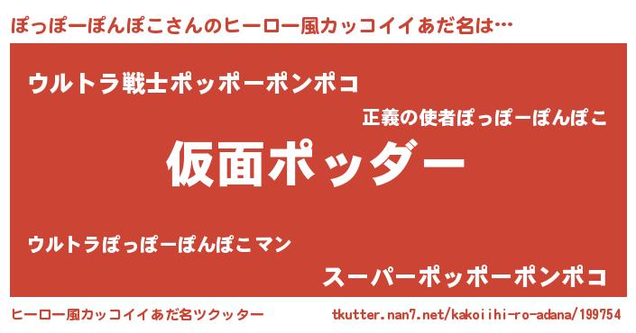 | 男性向けラノベタイトル風あだ名 | 『この素晴らしい世界にぽっぽーぽんぽこを!』 |