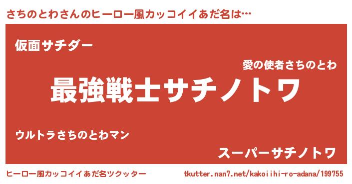 | 男性向けラノベタイトル風あだ名 | 『Re:さちのとわから始める異世界生活』 |