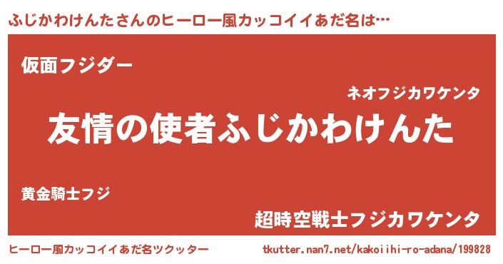 | 男性向けラノベタイトル風あだ名 | 『おまえをオタクにしてやるから、俺をふじかわけんたにしてくれ! 』 |