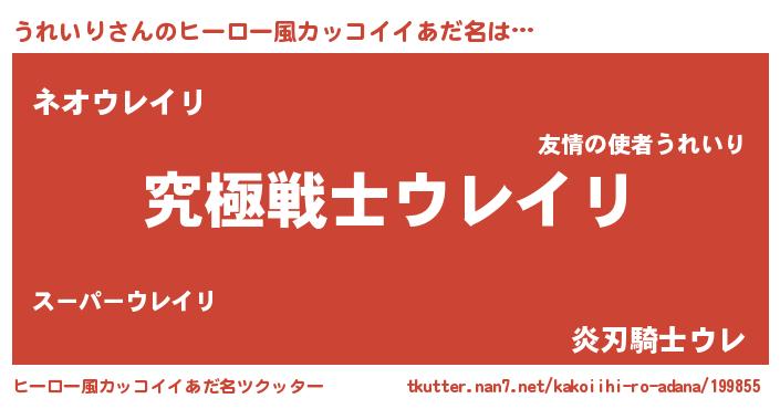 | 男性向けラノベタイトル風あだ名 | 『Re:うれいりから始める異世界生活』 |