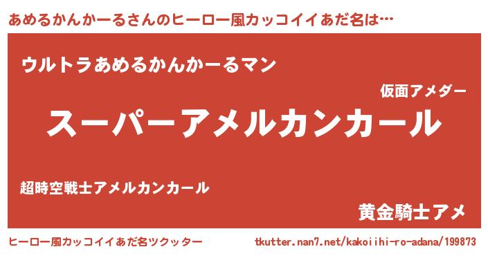 | 胡散臭い通販商品みたいなあだ名 | 『億万長者になれるブレスレット…その名も「あめるかんかーる」』 |