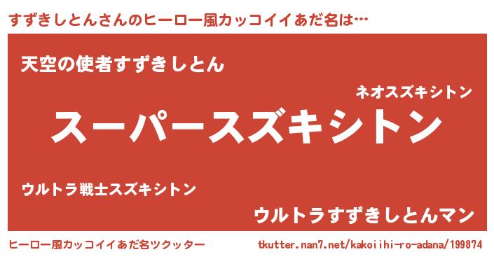 | 男性向けラノベタイトル風あだ名 | 『スズキシトンアートオンライン』 |