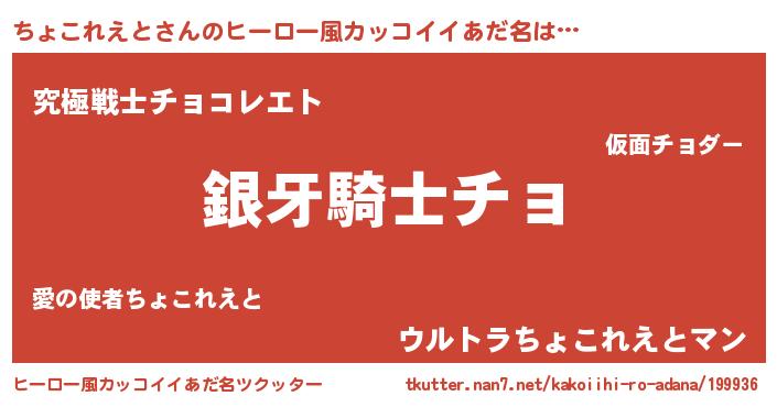 | 伝説のあだ名 | 『解き放たれた魔法使いちょこれえと』 |