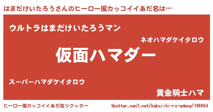 | 意味不明あだ名 | 『住所不定無職はまだけいたろう(10歳)』 |