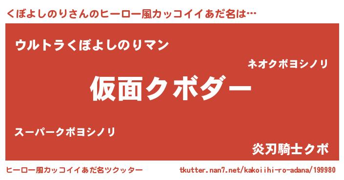 | 意味不明あだ名 | 『住所不定無職くぼよしのり(86歳)』 |