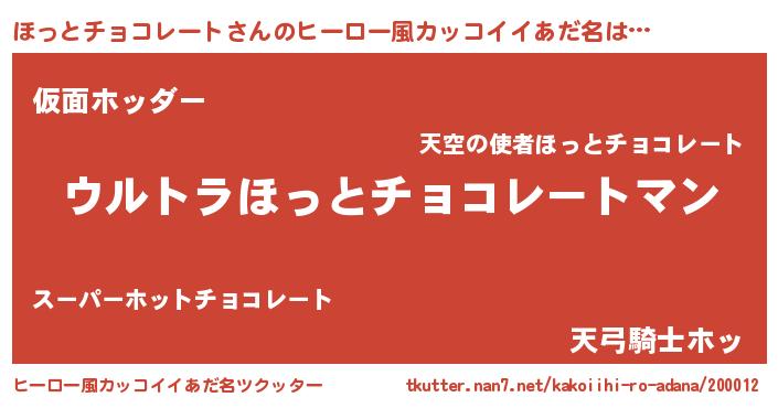 | ファンタジー風あだ名 | 『エターナルホットチョコレートー』 |