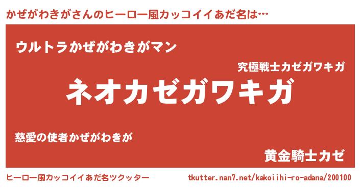 | 伝説のあだ名 | 『古文書に記された勇者かぜがわきが』 |