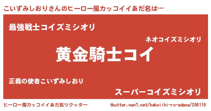 | 意味不明あだ名 | 『とにかく怪しいこいずみしおり』 |