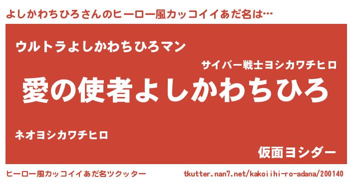 | 女子向けラノベタイトル風あだ名 | 『よしかわちひろ恋絵巻』 |