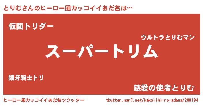 | 男性向けラノベタイトル風あだ名 | 『うちのとりむが世界を掌握している!』 |