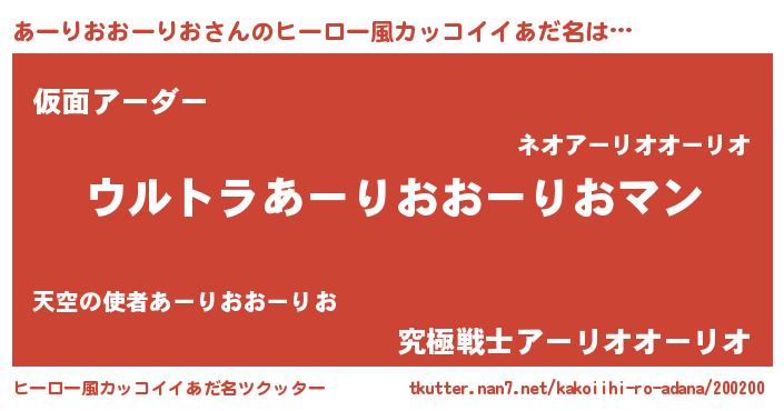 | 男性向けラノベタイトル風あだ名 | 『アーリオオーリオスレイヤー』 |