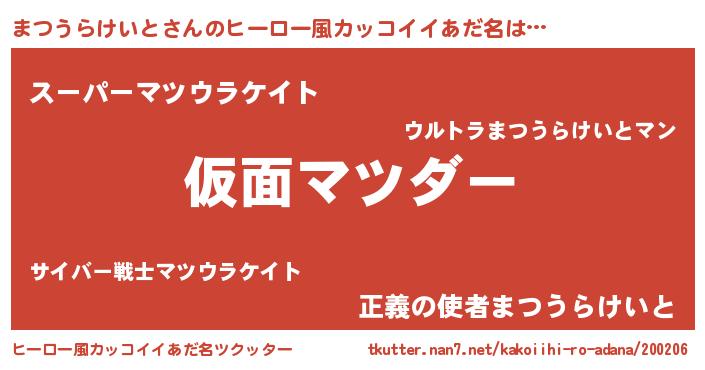 | 料理風あだ名 | 『まつうらけいとのカルパッチョ風』 |