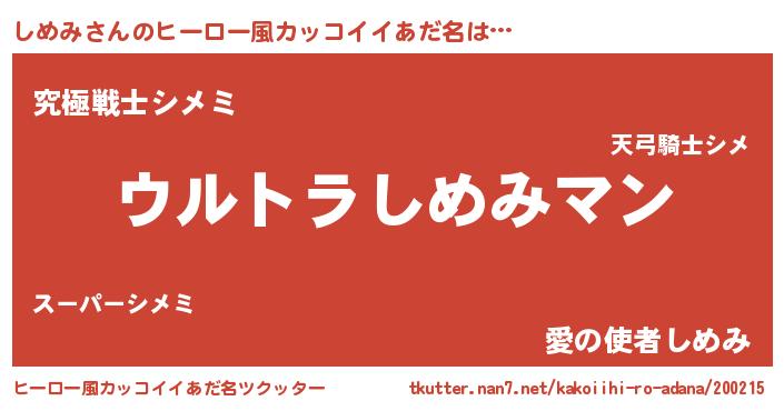 | 欧米人風あだ名 | 『しめみクリステル』『ダニエルしめみ』 |