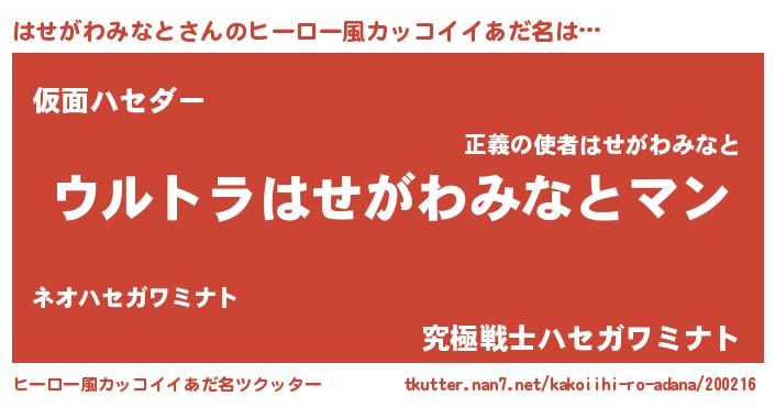 | 肩書あだ名 | 『はせがわみなと大統領』 |