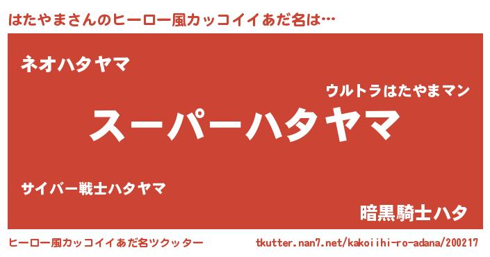 はたやまさんのヒーロー風カッコイイあだ名をツクッター!