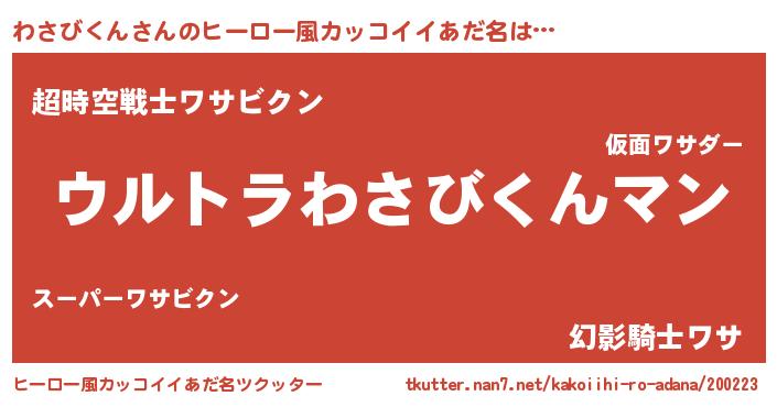 | ファンタジー風あだ名 | 『エターナルワサビクンー』『ゼワサトゥ』 |