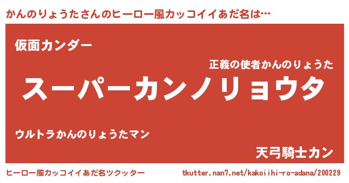 | 男性向けラノベタイトル風あだ名 | 『かんのりょうたの憂鬱』 |