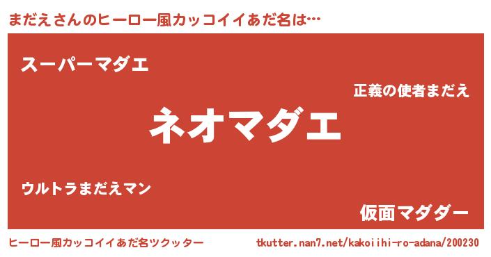 | ヘコむあだ名 | 『まだえ(苦笑)』『まだにー』 |