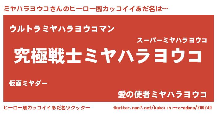 | 男性向けラノベタイトル風あだ名 | 『Re:ミヤハラヨウコから始める異世界生活』 |
