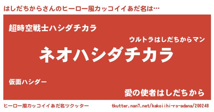 | 胡散臭い通販商品みたいなあだ名 | 『前代未聞の健康食品…その名も「はしだちから」』 |