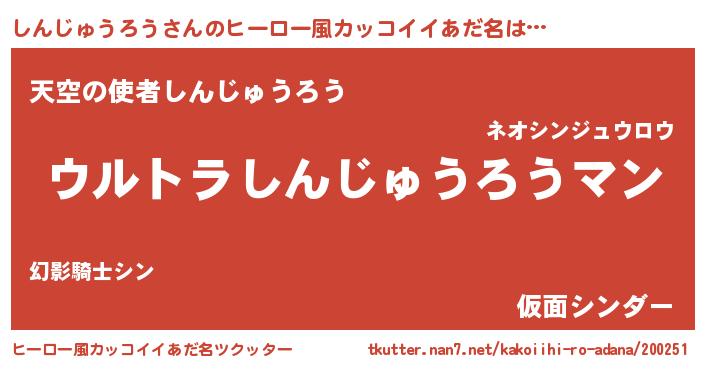 | 男性向けラノベタイトル風あだ名 | 『やはりしんじゅうろうの青春ラブコメはまちがっている 』 |