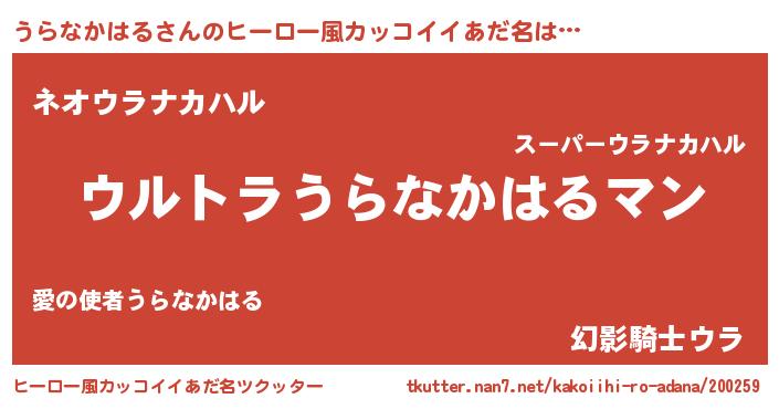 | ファンタジー風あだ名 | 『エターナルウラナカハルー』 |