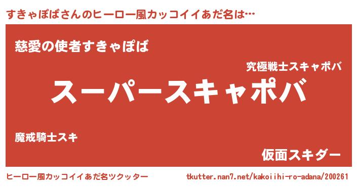 | 胡散臭い通販商品みたいなあだ名 | 『モテモテ間違いなし霊験あらたかなお札…その名も「すきゃぽば」』 |