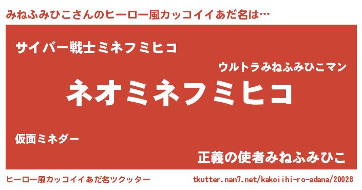 | 男性向けラノベタイトル風あだ名 | 『誰もが恐れるあのみねふみひこが、ぼくの専属メイドになるようです。』 |