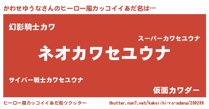 | ヘコむあだ名 | 『かわせゆうな(震え声)』『かわお』 |
