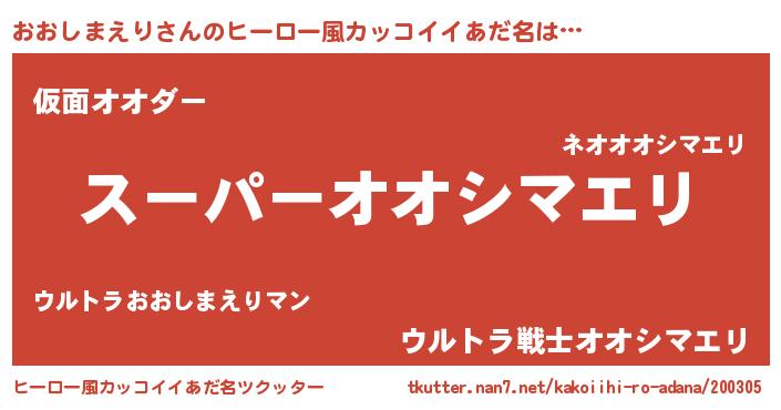 | 男性向けラノベタイトル風あだ名 | 『オオシマエリアートオンライン』 |