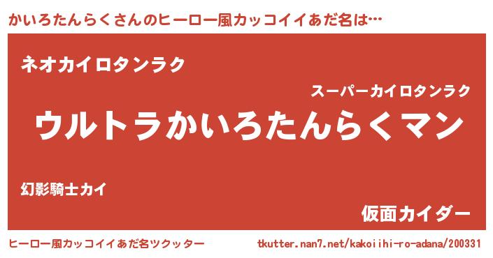 | 意味不明あだ名 | 『かいろたんらくフォーエバー』 |