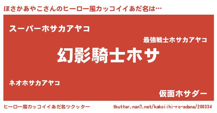 | 欧米人風あだ名 | 『ウサインほさかあやこ』 |