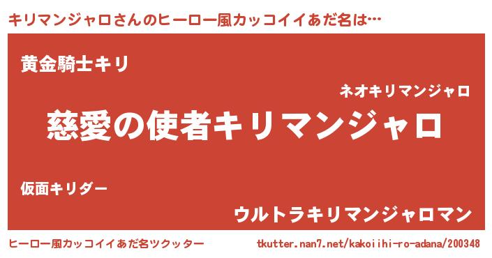 | 男性向けラノベタイトル風あだ名 | 『ノーゲーム・ノーキリマンジャロ』 |