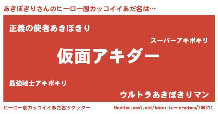 | 意味不明あだ名 | 『住所不定無職あきぼきり(89歳)』 |