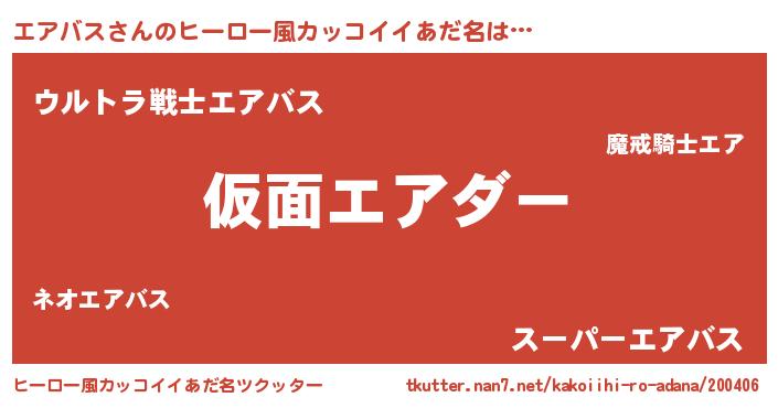 | 男性向けラノベタイトル風あだ名 | 『この素晴らしい世界にエアバスを!』 |