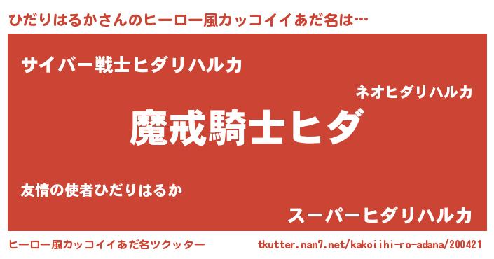 ポケモン風あだ名 | 『ヒヒダリハルカ』『ヒダセウス』 |
