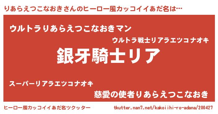 | 欧米人風あだ名 | 『ウサインりあらえつこなおき』 |