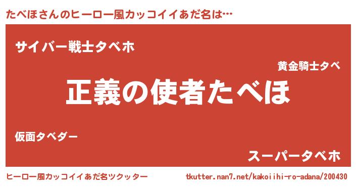 | ピコ太郎風あだ名 | 『タタ太郎』『タコ三郎』『タベ六郎』 |