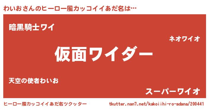 | 男性向けラノベタイトル風あだ名 | 『魔弾の王とわいお』『わいおの憂鬱』 |