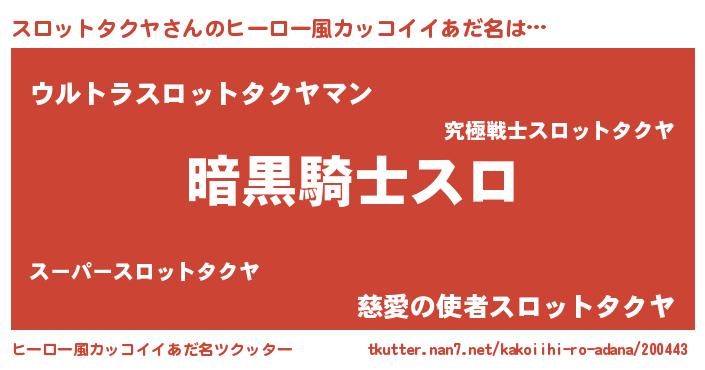 | 胡散臭い通販商品みたいなあだ名 | 『信頼と実績のネックレス…その名も「スロットタクヤ」』 |